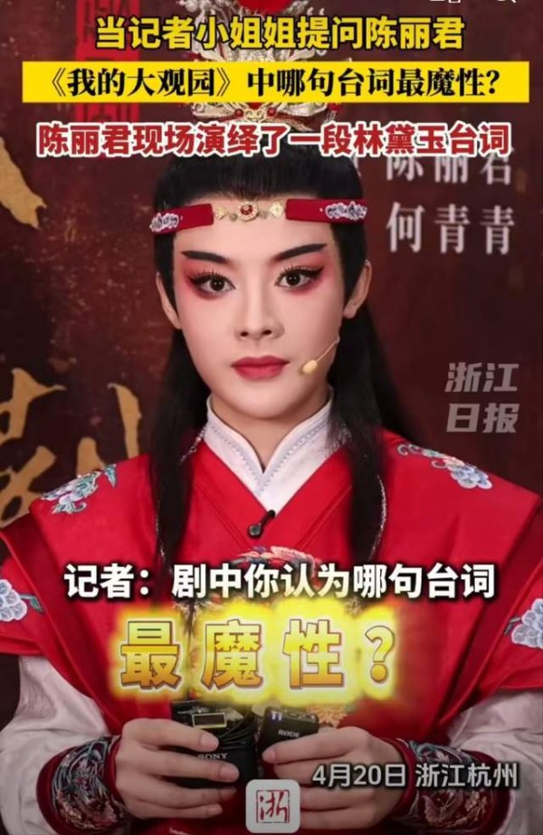 2025年4月20日,在杭州蝴蝶剧场的后台,镁光灯下,越剧演员陈丽君面对记者询问“剧中哪句台词最魔性”,眼中一闪即逝的光芒,随即与越剧的旋律交织,林黛玉那句“宝姐姐和你好”和“宝姐姐不和你好”脱口而出。挑眉、甩袖、翻白眼的层层反击,配合魔性的旋律,令这段30秒的即兴表演在抖音上达到692万播放量,网友纷纷评论“黛玉瞬间变怼怼林”以及“越剧脱口秀横空出世”。