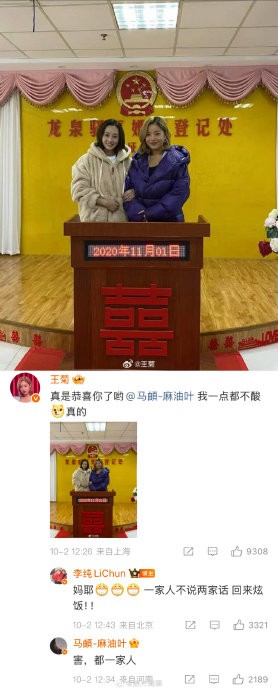 李纯马頔结婚王菊晒登记处合照