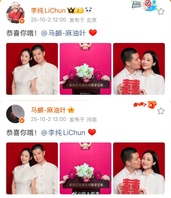 李纯马頔官宣结婚晒红底照马頔李纯官宣结婚