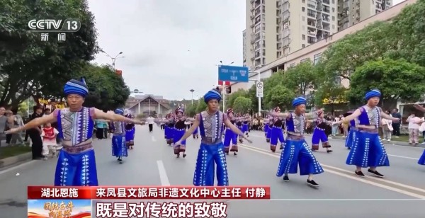 来凤县文旅局非遗文化中心主任 付静:国庆是举国欢庆的日子,用摆手舞巡游的形式庆祝,既是对传统的致敬,也是对新时代的礼赞。