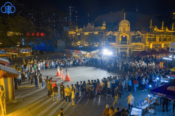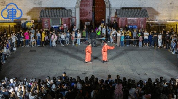 与此同时,一系列充满津门韵味的曲艺快闪活动也同步上演,为静谧的夜晚增添了灵动与欢快。