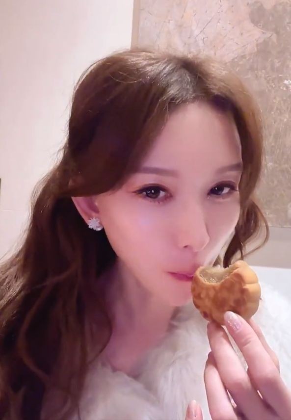 在视频中可以看到林志玲穿着一件白色的皮毛外套,披散着棕色的大波浪长卷发,戴着珍珠耳环,看起来十分贵气优雅,又很有气质。她的手里拿着精致可爱的月饼,对着镜头一口一口地吃了起来。林志玲吃得津津有味的样子,看起来这个月饼好像很好吃的样子。
