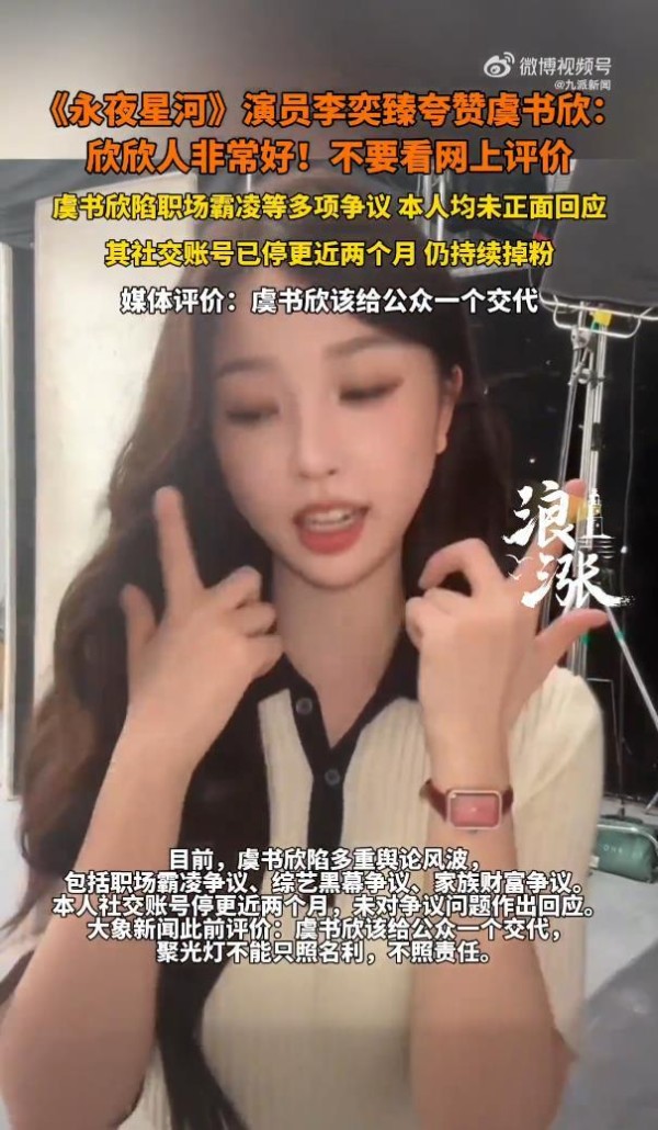 尽管合作演员李奕臻在直播中力挺虞书欣,强调“网络评价不可轻信”,但公众的质疑并未消散。职场霸凌、综艺黑幕、家族财富等争议持续发酵半月有余,虞书欣及其团队始终未作出任何正面回应。