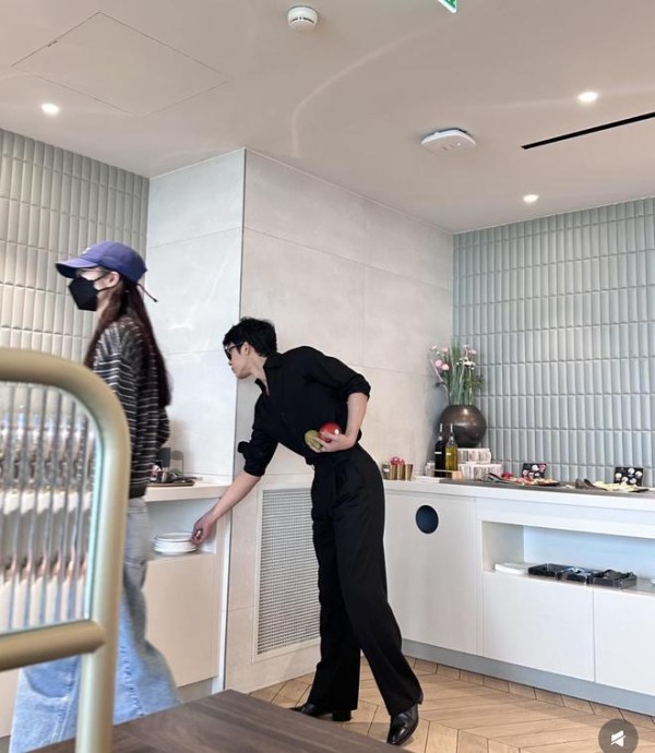 休息期间,井柏然前去吧台处拿食物,但他只挑选了一些水果,其他高热量的餐点是一点没动,由此可知他的好身材是如何练就的了。