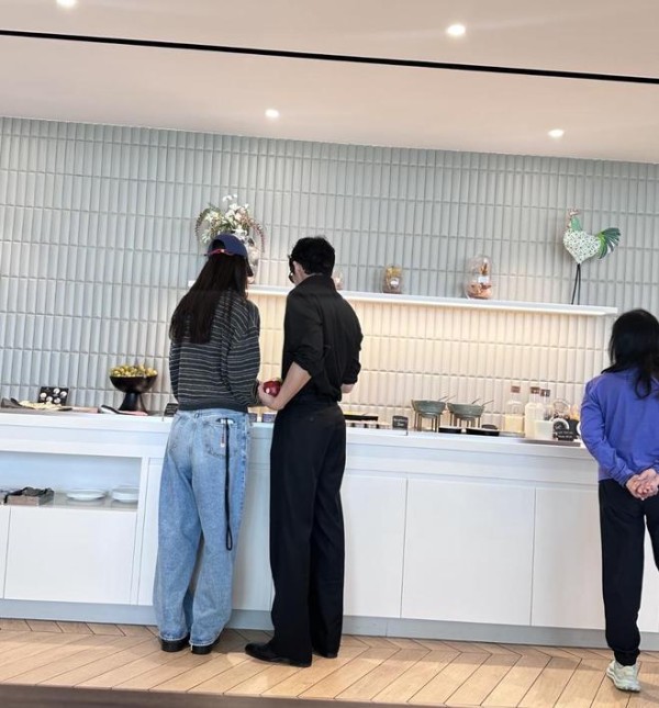 井柏然在拿餐点时,刘雯紧随其后,两人形影不离超黏的。