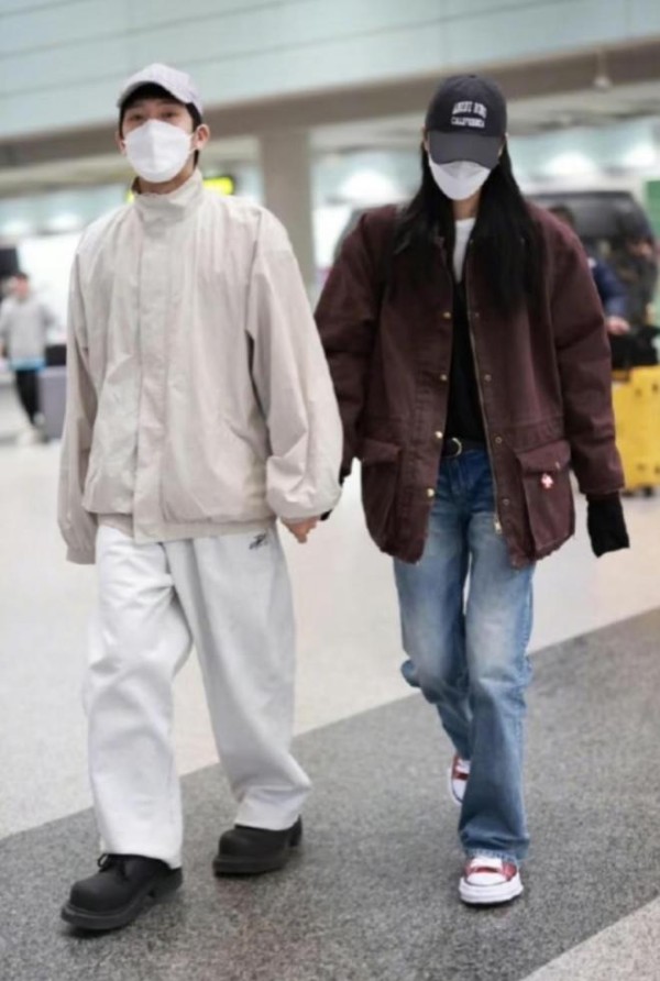 井柏然刘雯法国机场被偶遇,两人形影不离超甜,井柏然白到发光