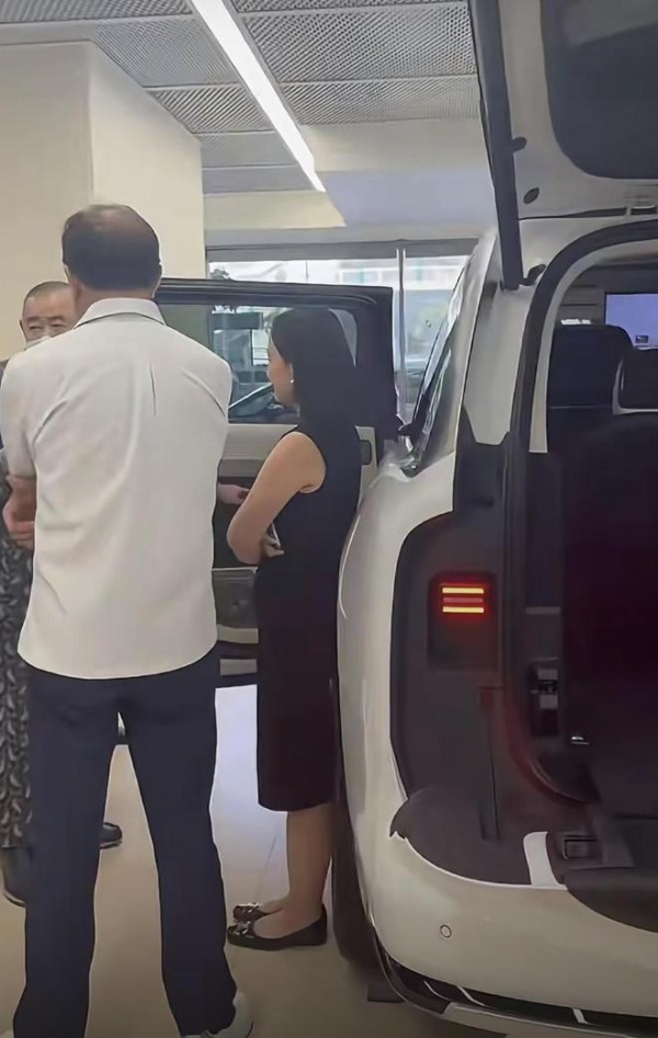 到达国产车门店后,工作人员立刻上前给刘銮雄介绍车辆情况,刘銮雄认真倾听,工作人员还打开车门让刘銮雄观看里面的配置。