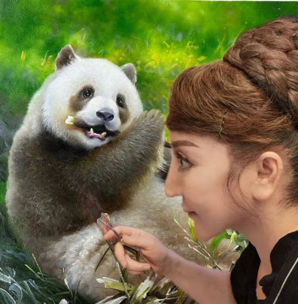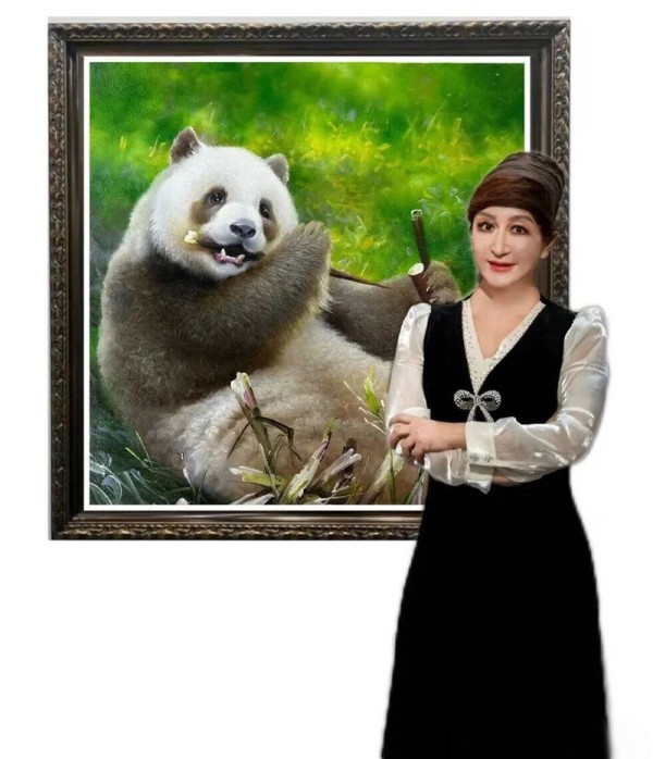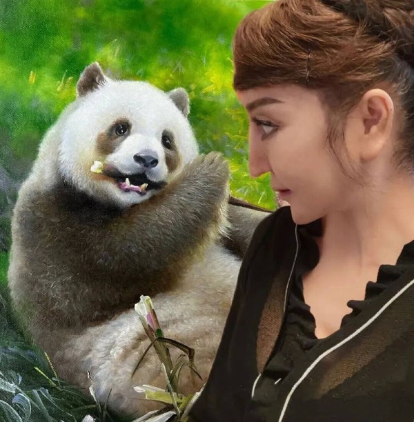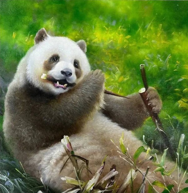 晏子油画《秦岭食竹》 斩获加拿大国际动物大赛铜奖