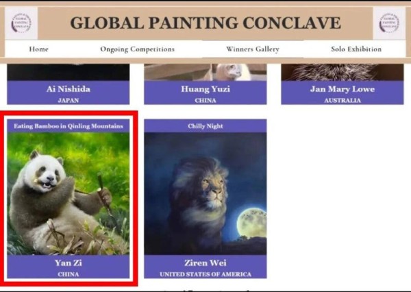 晏子油画《秦岭食竹》斩获加拿大国际动物大赛铜奖