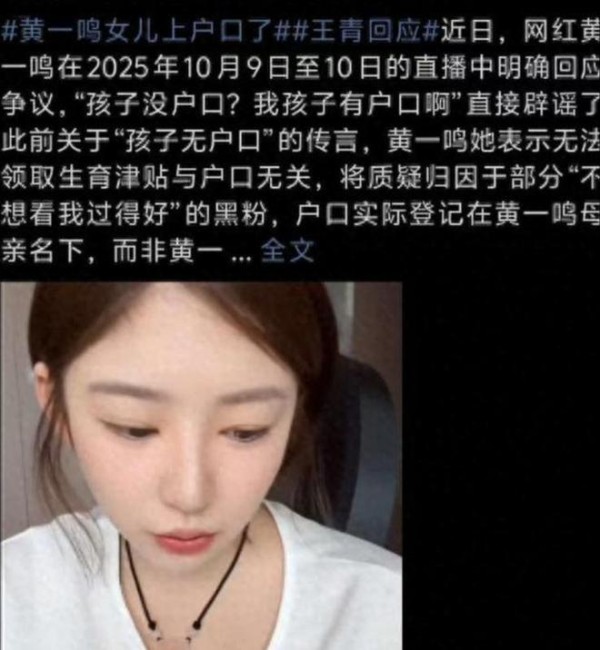 9月份,黄一鸣直播间爆料出,自己的女儿已经上了户口,不过不是在自己的身边,而是在母亲的户口上。