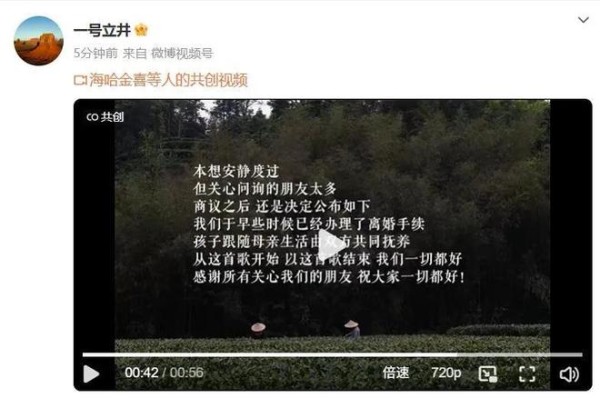 俩人是今天下午发的声明,说得挺实在:结婚三年,现在决定和平分开,3岁的女儿李夏会跟着妈妈海哈金喜生活,但他俩会一起尽抚养责任。没撕逼、没互怼,字里行间都透着“好聚好散”的意思,这点倒比很多明星离婚撕得难看强多了。