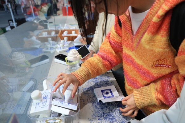 中国人民大学社会学专业学生汪凤琴拍下了路边一个画满各种涂鸦的电表箱,“这些随意的涂鸦特别可爱,我很喜欢。” 汪凤琴很喜欢园区的氛围,“到处都充满了创意,而且整个园区很轻松自由,我会很放松。”提及看到的展览,汪凤琴表示,之前看展都是自己和朋友一起,这次有了专业导览,对展品也有了更多了解,“现在艺术家很多,艺术形式也很多元,专业导览带着看会很不一样。在她介绍大漆之前,我都不知道它属于什么艺术形式。”