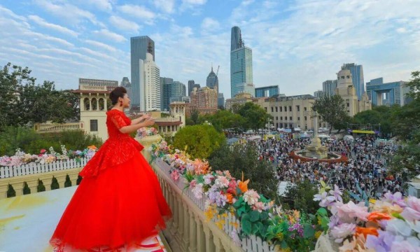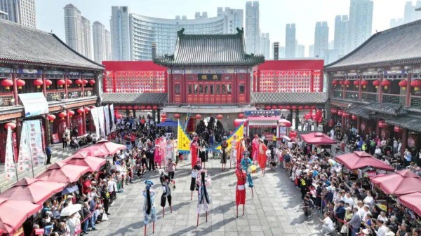 不远处的古文化街亲水平台,“你好天津·合韵非遗”为游客展示竹马、舞狮、高跷等民俗艺术,意式风情街推出歌剧、快闪沉浸式演出,营造浪漫温馨的节日氛围。