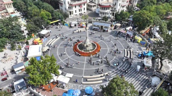 离开解放桥,往进步桥方向漫步,眼前的建筑在空中铺展成画卷。充满异域风情的欧式建筑群,诉说着城市凝固的历史,中式传统四合院,承载本土生活的烟火气息,现代化摩天高楼彰显都市的新活力。这些建筑群高低错落、排列有序、彼此映衬。