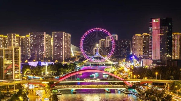 今年以来,天津城市夜景尤其是灯光秀升级更新,对海河沿线217栋建筑、14座桥梁、8.2公里岸线及7座码头的光环境进行优化,解放桥、大光明桥等14座桥梁形成“跨河灯光长廊”,每座桥设计独特灯光效果;技术层面升级,采用智能联动控制系统,实现20余万盏灯具集中调控,新增智能互动灯光装置,8公里亲水步道的灯光可随行人脚步变化,天津之眼摩天轮首次应用“激光投影+高清视频像素灯”技术,实现动态光影效果。“海河之夜”灯光秀成为吸引游客打卡的项目之一。