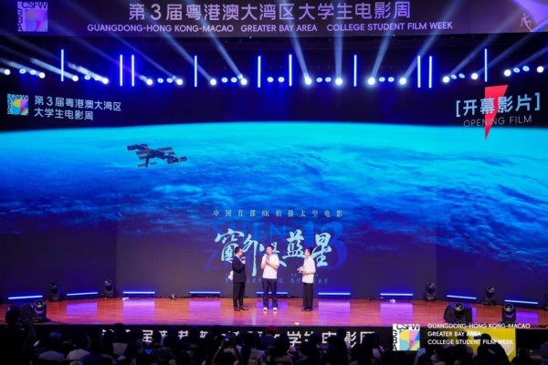 在全场嘉宾及大学生的共同见证下,第3届粤港澳大湾区大学生电影周正式拉开帷幕,开启为期两周的精彩活动。