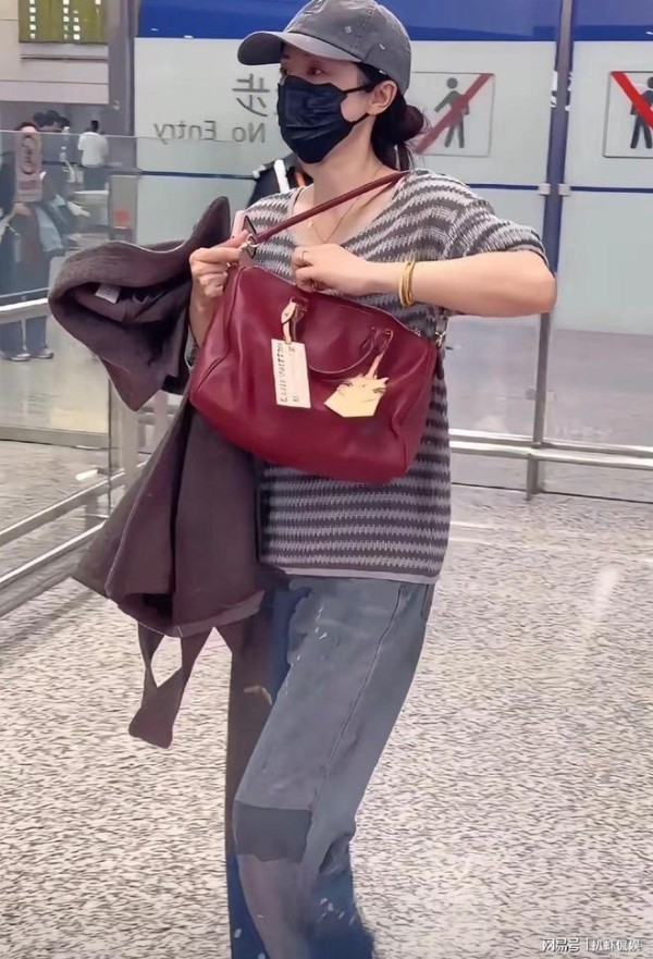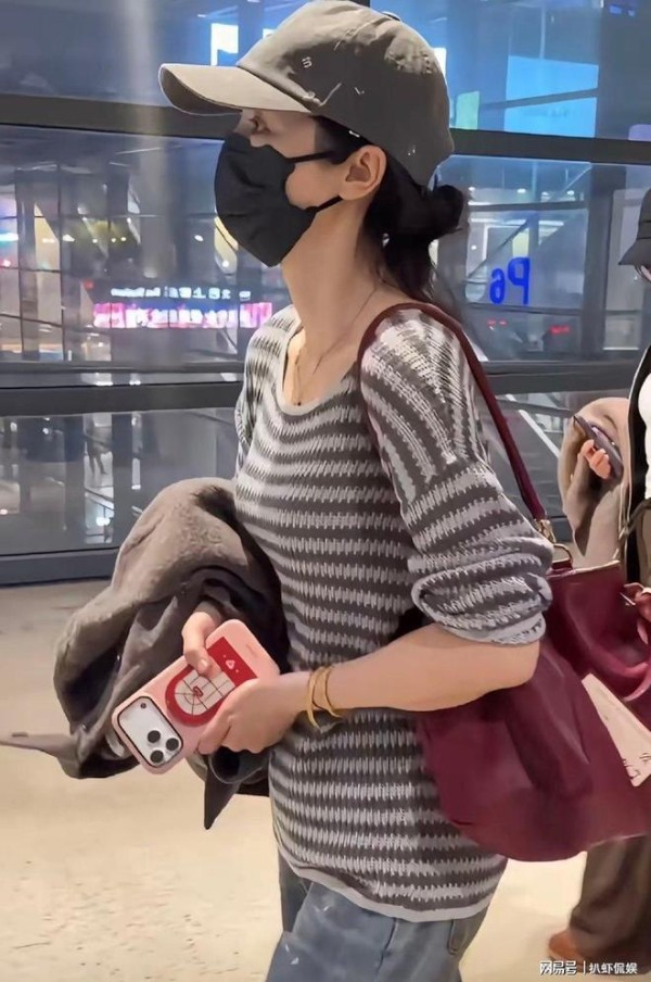 董璇穿着十分年轻,条纹毛衣搭配补丁牛仔裤,头戴灰色棒球帽,出入公共场合,她时刻佩戴口罩,全程都很低调。
