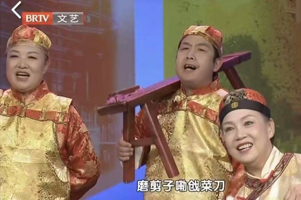 在 BRTV 文艺频道的舞台上,聚光灯如梦幻般倾洒,一位身着传统服饰的人物瞬间吸引了全场目光,他便是北京市第二批非物质文化遗产吆喝艺人郑光荣。只见他稳稳地肩扛着板凳道具,气定神闲,随后,那洪亮且韵味十足的“磨剪子嘞戗菜刀”吆喝声响起,仿佛一道时光闸门被打开,瞬间将观众带入了充满烟火气的老北京街头,一场生动演绎吆喝叫卖艺术的表演就此拉开帷幕。