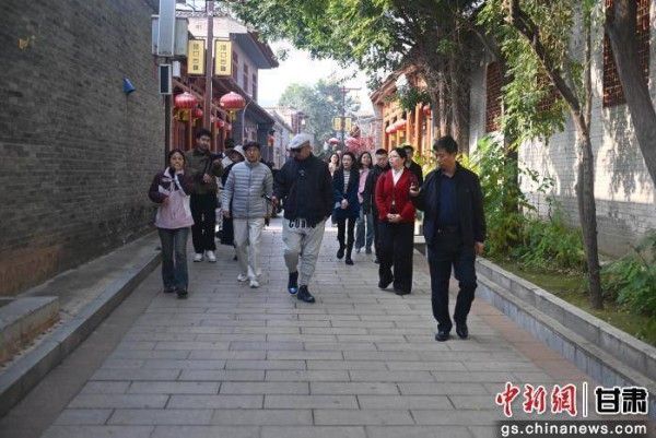中新网甘肃新闻10月21日电(刘潇 史静静)10月21日,兰州国际传播交流宣传周期间,来自加拿大、爱尔兰、德国、韩国等国家和地区的海外华文媒体融合采访团走进兰州市西固区河口古镇。成员们沿青石板路漫步,触摸明清古民居砖雕木刻,聆听黄河岸边千年故事,用镜头记录丝路古镇文旅活力。