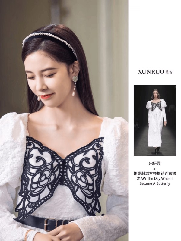 作为毕业于意大利马兰戈尼服装学院的设计师,陈丹、陈盈在东西方美学之间构建起独特的对话空间。这种独特的融合美学,不仅在国际舞台上大放异彩,也深受明星群体的喜爱。包括张子枫、周也、戚薇、金晨等顶流明星都青睐熏若的定制设计。不少明星造型师透露,熏若的设计既能展现东方气质,又具备国际化的时尚表达,是红毯和重要场合的安全选择。这不仅体现了熏若设计的市场认可度,更让传统工艺通过明星影响力走进了更广阔的公众视野。