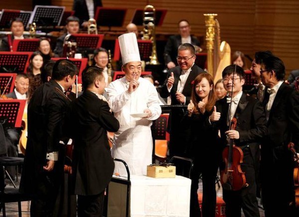 大红袍、佛跳墙、北京烤鸭、热爆明虾……在95后作曲家梁皓一的奇思妙想里,菜肴化作乐章,厨具成为乐器。《中国厨房——味觉的盛宴》一从日常生活中取材,把市井烟火融入交响乐语汇:“佛跳墙”里,小提琴的揉弦如汤沸腾,单簧管的低音滋味醇厚,竖琴温柔拨弦,像母亲轻轻搅动热气的手;“热爆明虾”里,小军鼓上撒钥匙,像油花飞溅,木琴与铜管连击,是鲜虾在热油中弹跳的节奏;而最让北京观众感到亲切的,莫过于那道闻名中外的“北京烤鸭”,磨刀、片鸭,爽利的节拍狠狠“折磨”了一把打击乐,筷子替代了鼓棒,菜刀与镲片磨刀霍霍,锅碗瓢盆都被标注在乐谱上,点缀着这场生动热闹的“厨房戏”。