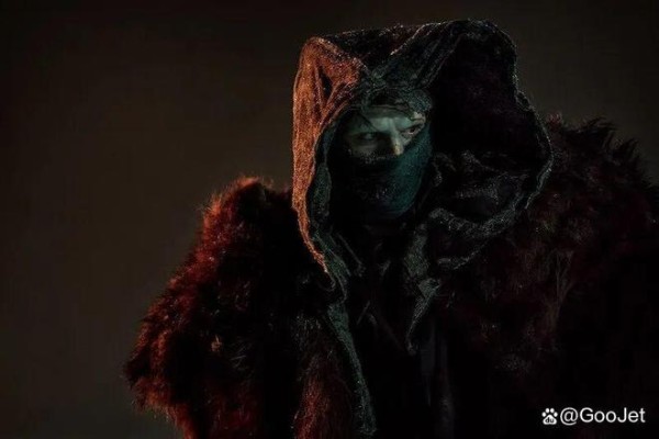 衣服从破斗篷到敞开胸口,一层层裹着,越到后面越驼背,像被世界伤透的少年。Jacob Elordi 自己发过一张剧照:怪物妆抱着自家狗 Layla,诡异中带点萌,但那双眼睛一瞪,瞬间吓人。