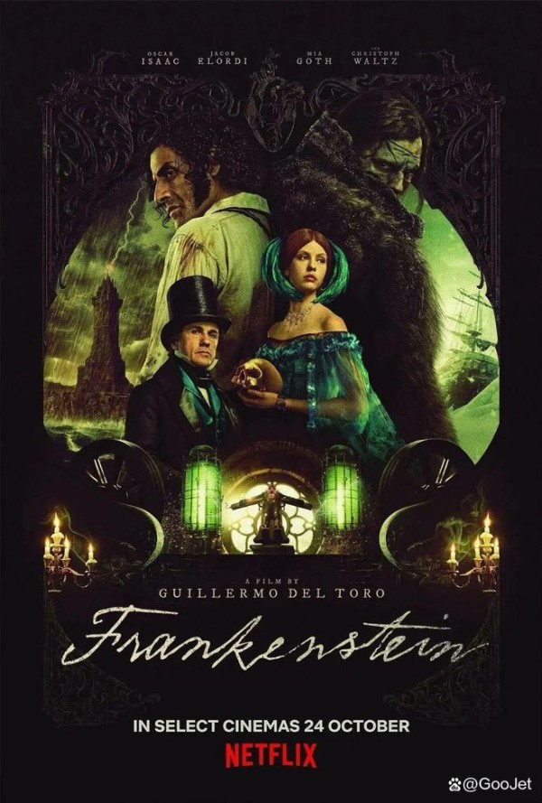 这不是普通恐怖片,是讲创造、抛弃和复仇的故事。Jacob Elordi 的表演很抓人,从低沉旁白到跟 Oscar Isaac 的对峙,情绪层层递进。全片实景拍摄,实验室像18世纪水塔,画面很震撼。
