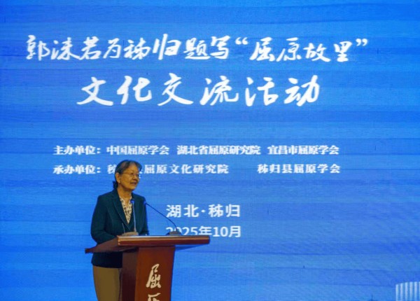 郭沫若先生之女、中国郭沫若研究会名誉会长郭平英亲临现场,深情追忆父亲在推动屈原跻身世界文化名人、促进屈原文化国际传播中的重要贡献,细数郭沫若与秭归的深厚情缘。她表示,此次活动的举办,是屈原文化研究在中国普及并与世界文化交流的成功实践,希望进一步加强相关机构联系,共同弘扬中华文明。