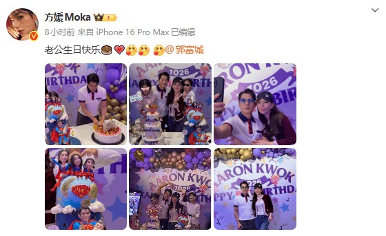 10月26日,方媛在社交平台晒出为丈夫郭富城庆祝生日的派对照片,并配文“老公生日快乐”。郭富城随即回应:“谢谢老婆,谢谢大家的祝福。”