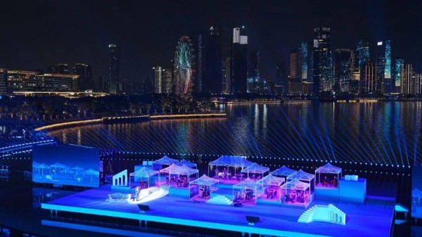 作为深圳市重点打造的文化新地标,欢乐剧场以同心共享、潮起前海、舞动湾区为设计理念,以突破性设计重塑演艺空间——剧场与海域无缝衔接,将星辰、城市灯火及巨型摩天轮融入舞台视野,形成独一无二的海景剧场。观众落座陆域看台,海风与旋律交织,摩天轮的光影随演出节奏流转,共同营造出极具感染力的舞台美学体验。