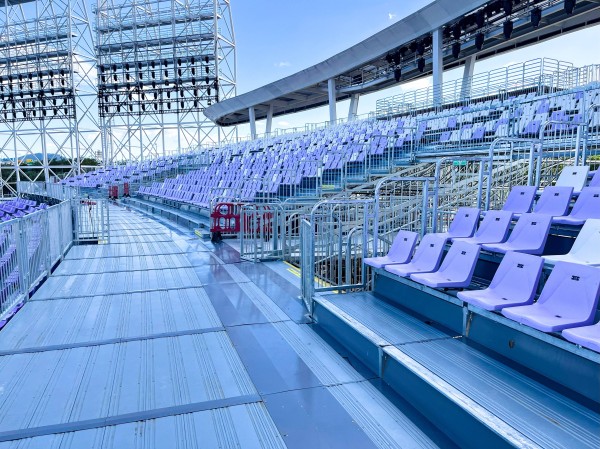 该看台适用范围广泛,可安装在沙地、草地、泥地及水泥地面等多种地基上。配备的可斡旋底部支撑系统,能够在斜坡或不平整地面上保持整体水平。其模块化扩展设计,可便捷地增加座位数量,实现从基础配置到更大规模的平滑升级,为剧场未来承接不同规模的演出给予了灵活调整的空间,长期满足运营方和主办方不断增长的观众容量需求。