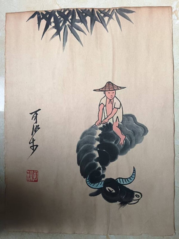 情感的记忆与寄托: 这些画作是李可染对自身童年牧牛经历的情感回溯,是其内心深处的“桃花源”。在战乱和后来繁忙的教学创作生涯中,《牧牛图》成为他保持内心纯净与安宁的一种方式。人与自然的和谐: 牧童与水牛之间亲密无间的关系,是农耕文明中人与自然和谐共生的诗意象征。这种和谐,在工业化与现代化的进程中,显得尤为珍贵。民族精神的隐喻: 水牛温顺、坚韧、吃苦耐劳的品格,常被视为中华民族精神的写照。而充满朝气的牧童,则象征着希望与未来。二者的结合,寄寓了画家对民族未来的美好祝愿。五、 收藏价值与升值空间