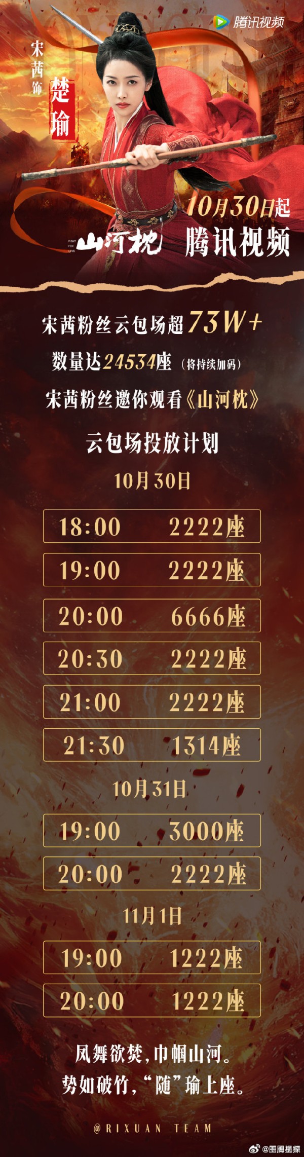 宋茜新剧《山河枕》开播在即,粉丝云包场超73万