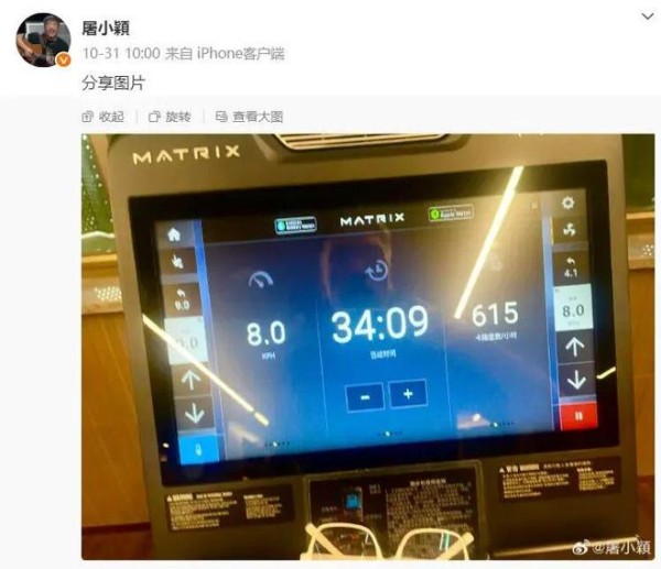 据悉,屠颖10月31日仍在更新微博,给粉丝们分享了广州美食和美景。早晨10点,他还发布了自己在跑步机上的照片。