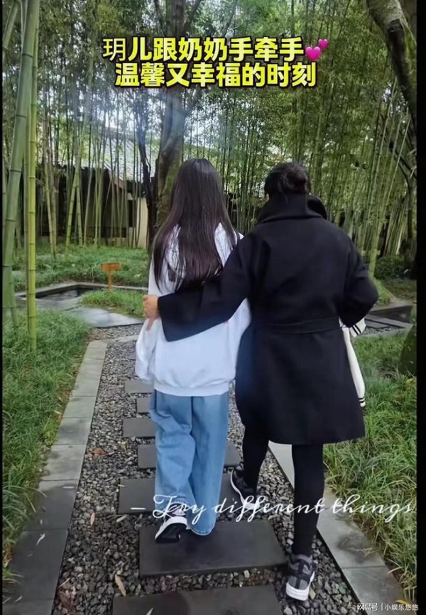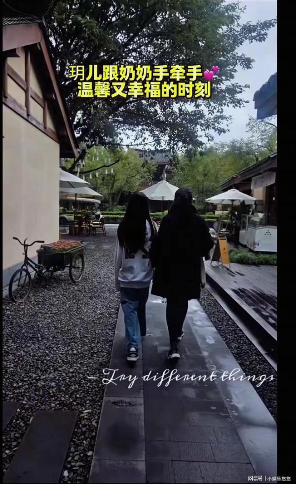 玥儿新动向!张兰小玥儿成都公园亲密散步,玥儿行为举止略显拘束