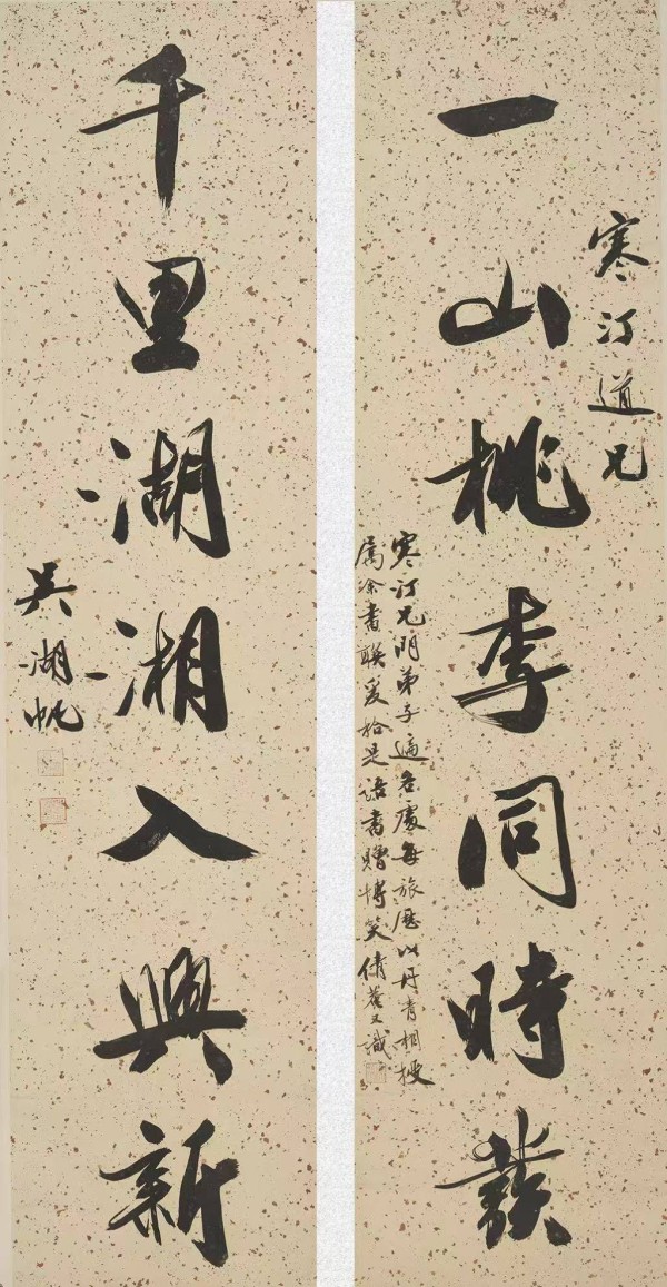 当然,由于江寒汀为人谦和,且富热忱,所以和画院其他画师关系都不错,比如吴湖帆,早在40年代就交往颇多,江寒汀的多幅《百鸟百卉图》卷和册页,都有吴湖帆的引首和题跋,还特地撰联以赞扬江寒汀收徒之多。