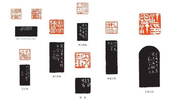 其他还有不少篆刻家,虽然未见文字记载明确交往,但是现存江寒汀的用印,可以明确显示他们之间的往来交游,如陈巨来、叶璐渊、来楚生、白蕉、王个簃、方介堪、邓散木等等。