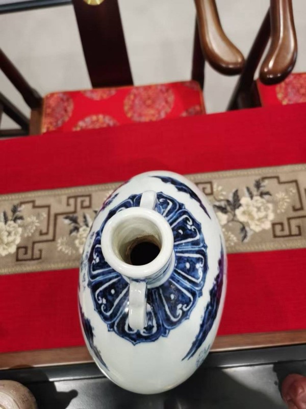 纹饰中的精神世界:瓶身所绘的人物纹,如“携琴访友”、“仙女乘鸾”、“八仙过海”等,反映了宣德时期宫廷与文人士大夫阶层的精神追求。它们融合了道家飘逸出世的仙风道骨与儒家积极入世的理想情操,体现了当时社会多元而和谐的文化心态。中外文明的交融:扁瓶的器型本身,带有一定的异域风格元素,但其纹饰与工艺却是纯粹的中国文化产物。它生动地体现了明代早期在保持自身文化主体性的同时,以开放自信的姿态吸收外来文化因素,并将其完美“中国化”的过程,是当时中外文明交流互鉴的珍贵实物例证。帝王品格的物化:宣德青花整体风格雄健浑厚,又不失文雅精致,这与明宣宗本人的性格与艺术修养密切相关。他既是能征善战的马上天子,又是精通诗书画的文人皇帝。这种双重性格,使得宣德官窑瓷器在豪放中蕴含精致,在力量中体现优雅,形成了独一无二的“宣德气质”。