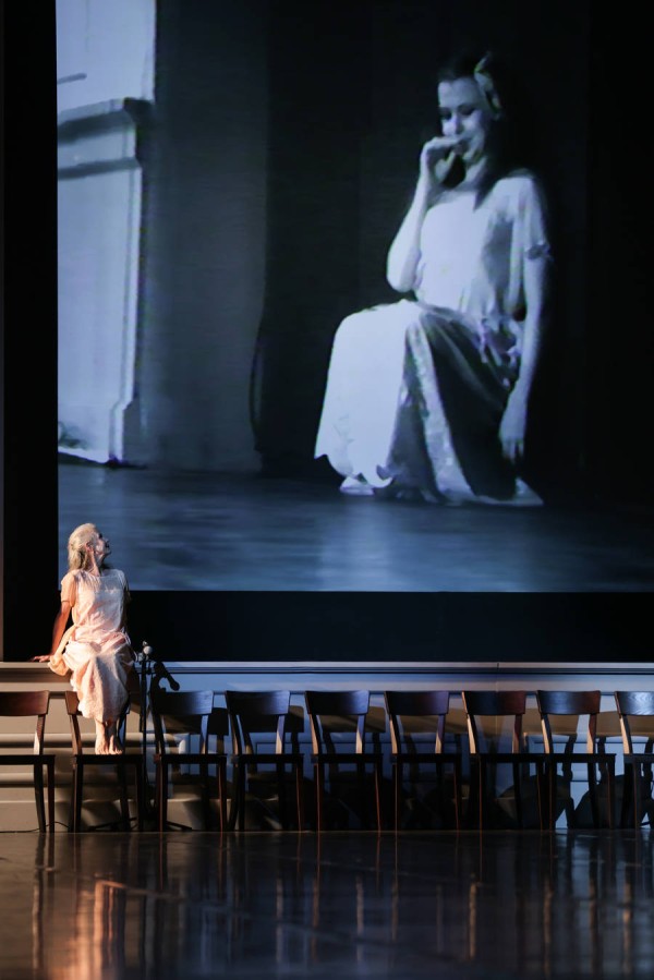 今年早些时候,意大利导演同样运用了这种手法。皮普·德尔邦诺在他的最新作品《觉醒》中,构建了一种横向的永恒对话,生者与逝者的交流,演员们与屏幕上已故导演的缪斯Bobo共舞。他坐在舞台上读信,自己写给自己的信,信里提及了Bobo,还有皮娜·鲍什。在他的世界里,时间不是线性的流逝,而成为一个可以自由穿越的场域,不再是与过去的自己对话,而是与永远定格在时光那头的灵魂交谈。这两部作品,如同彼此映照的镜子,共同构建了一座关于记忆,身体与永恒的时间神殿。