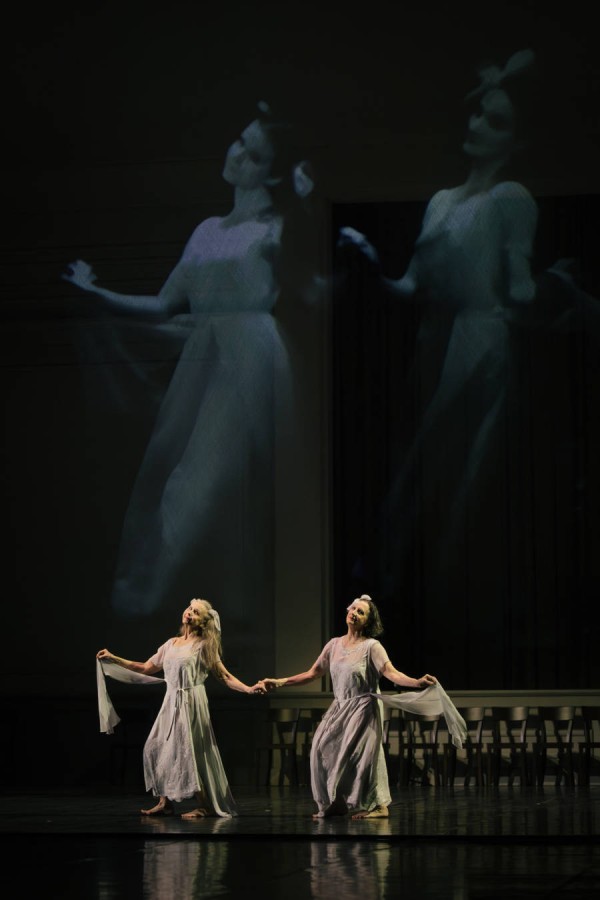 舞台好像是一个巨大的电影院,中间是幕布,下面一排整齐的椅子,旁边有钢琴,靠近观众席的地方放置着小马,就是小孩子最爱的超市门口的摇摇马。上半场关于1978年的舞蹈现场是被投影在舞台前面的透明幕布上,对比极其强烈,舞者一个个按照当年出场的顺序来到舞台中间,做出和当年一样的动作,抬手,翻手,向前伸,放下,特别简单,但是和47年前青春满溢的身影对比,有一种不可言说的沧桑。在《回响1978》的开场之初,舞者们仰头凝视屏幕上黑白影像中年轻的自己,少女的身影和神态特别的纤细,当年姿态依旧挺拔,如今白发苍苍,眼泪会在黑暗中默默流下来。叶芝说:“多少人爱你青春欢畅的时辰,爱慕你的美丽,假意或真心,但是我更爱你饱经沧桑的面庞,衰老脸上痛苦的皱纹。”