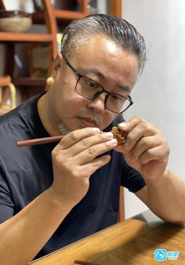 11月17日,在潍坊十笏园非遗空间,记者来到山东省工艺美术大师王建学的工作室采访时看到,《琵琶行》核雕作品精美吸睛。据了解,该作品是王建学历时三个多月,运用立雕、镂空等多种技法设计雕刻而成,刻画的是元和十一年(公元816年),白居易到湓浦口送客,巧遇琵琶女的场景。