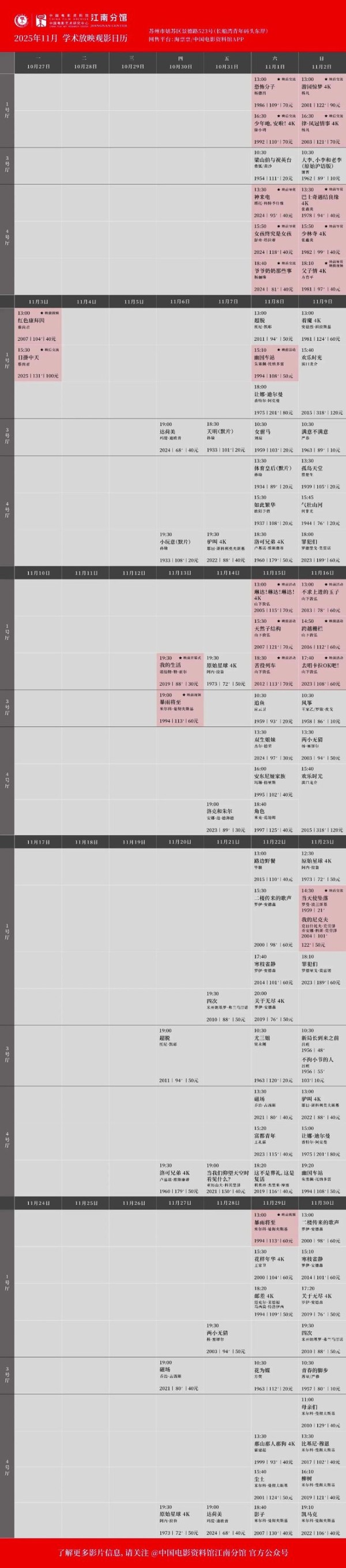 所有场次均可在淘票票、中国电影资料馆APP购票,具体排片见末图,祝大家观影愉快。❤️