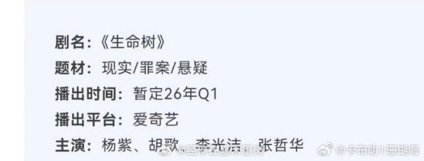 又争夺番位?《生命树》杨紫胡歌主演,好作品,比谁是一番更重要杨紫新剧《生命树》!李光洁、胡歌领衔主演,全员演技派