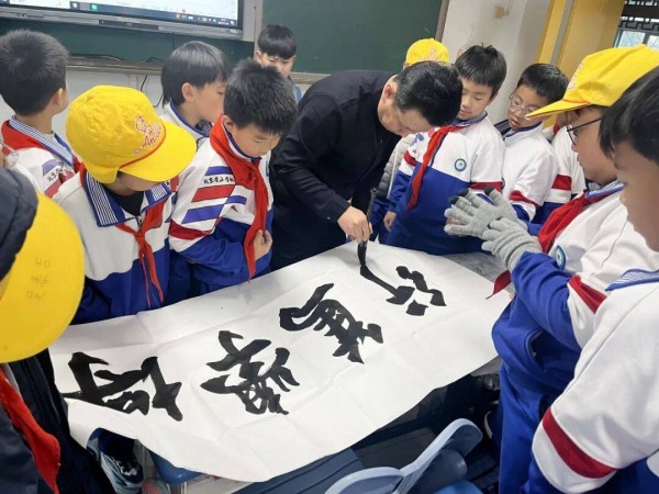 近日中国名家书画艺术研究院常务副院长、书画家张和走进北京景山学校大兴实验学校为在校学生带来了一堂浸润传统文化的书画课,课堂上张和老师从汉字的起源演变,间架结构与文化内涵娓娓道来,甲骨文中的象形奥秘,金文里的线条演变,楷书的端庄规整,都在他的生动演讲中变得鲜活有趣,他挥毫示范,用笔墨勾勒汉字的间架结构,让学生们直观感受“横平竖直”里的文化底蕴,“一撇一捺”中的精神传承。孩子们听得津津有味,时而举手提问,在互动中触摸汉字的温度,在体验中领悟传统文化的魅力。
