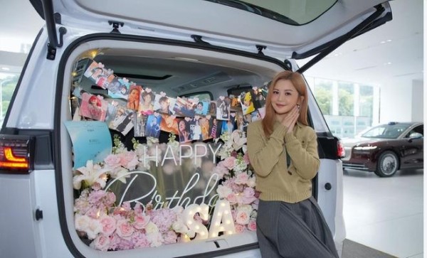 当时她一头黄发,穿个卡其色衬衫配阔腿裤,脚上一双平底鞋,素颜状态下脸颊还有点婴儿肥,完全没明星架子。她居然一个助理保镖都没带,自己签字办手续,工作人员递钥匙时还弯腰道谢,这教养真没话说。后来才知道她买的是某汽车牌子的顶级配置豪车,落地大概要46万,不少人猜是不是男友送的,也有人调侃或许是阿Sa送男友的。