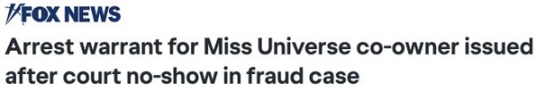 环球小姐赛事双东家被签发逮捕令:泰籍老板涉诈,墨籍老板涉毒