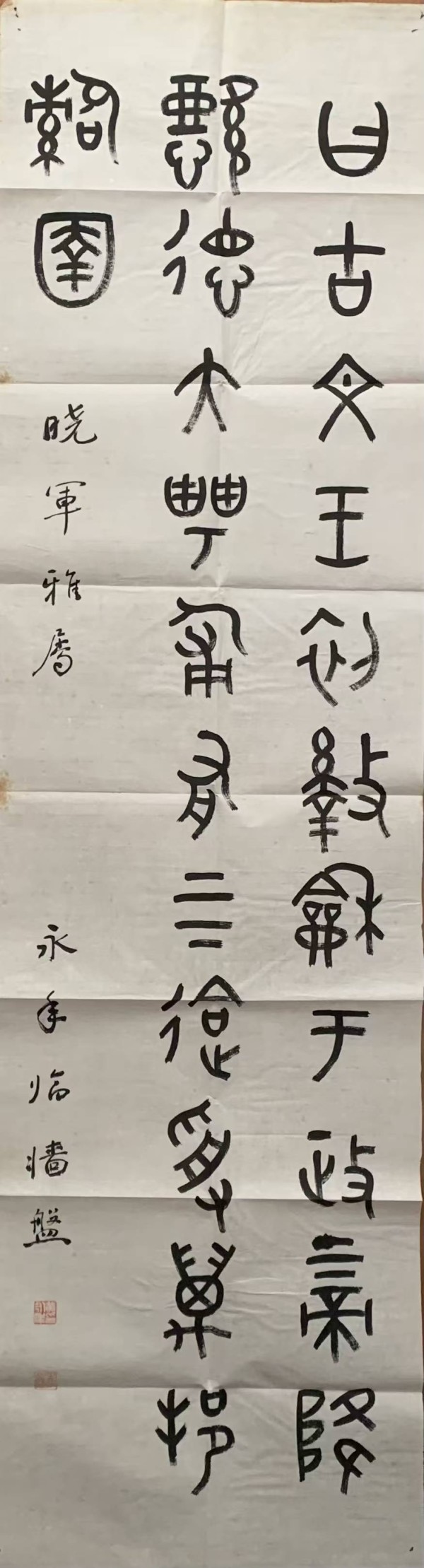 条幅上未署时间,具体年月我也记不太清了,在我的印象中,这幅墨宝似乎是上世纪八十年代前期黄先生所赐。当是黄先生存世不多的金文作品之一,弥足珍贵。