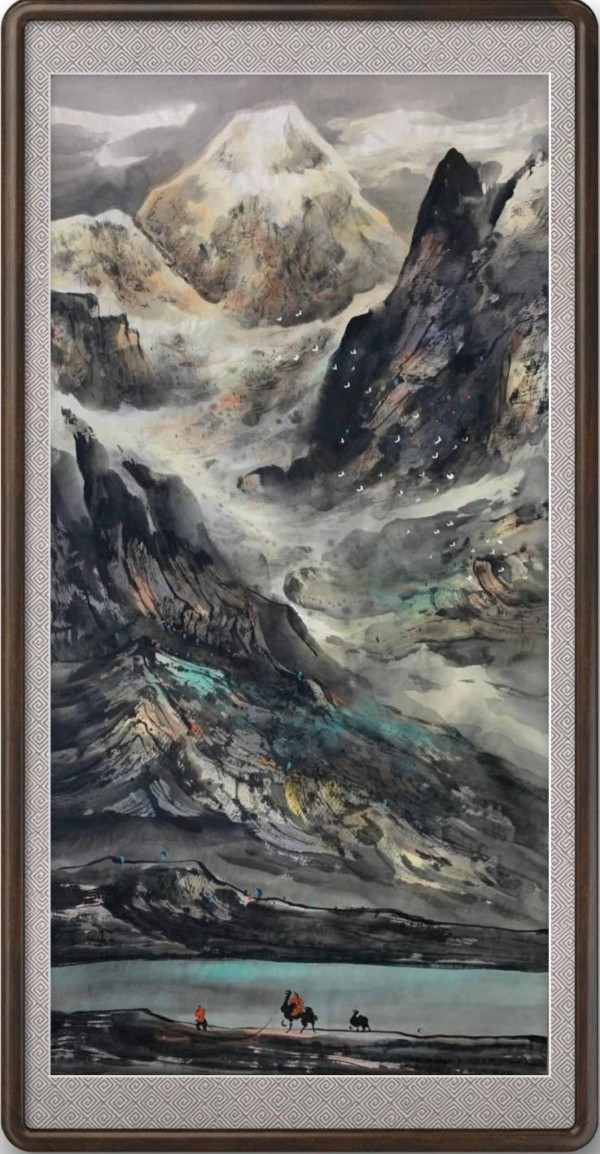 绘画创作中,他以开宗立派的魄力,重塑北宗画派的当代辉煌。作为中国当代北宗画派创始人,谷耘棠摒弃董其昌“崇南抑北”的偏见,重拾北宗山水“峰峦浑厚、势壮雄强”的精髓,以笔墨重铸大山精神。他专攻大山大河,笔下的长城蜿蜒如龙、气势磅礴,黄河奔腾咆哮、浊浪滔天,漠北戈壁苍凉壮阔,胡杨林坚韧挺拔,太行山雄奇险峻,天山红韵热烈厚重,更将“一带一路”“丝绸之路”的时代气象纳入画卷,尽显民族精神与山河气魄。其画风雄浑厚重、墨韵深厚,以大线面、大浓淡的对比塑造立体质感,既延续了北宗山水“师法自然、搜妙创真”的传统,又赋予其鲜明的当代精神,无愧“中国画长城国礼第一人”“中国画黄河国礼第一人”的美誉。同时,他作为“非遗木刻版画传承人”,以刀代笔,在木版上镌刻时代风貌,作品兼具力度与温度,拓展了版画艺术的表达边界。