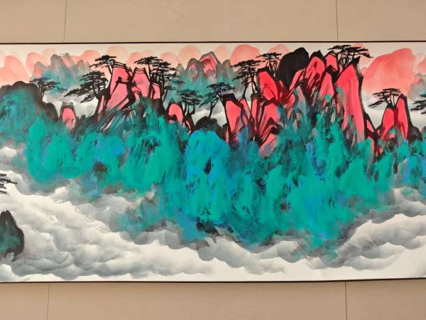 画家殷大坤泼彩山水画赏析:泼墨挥彩间,尽显天地苍茫