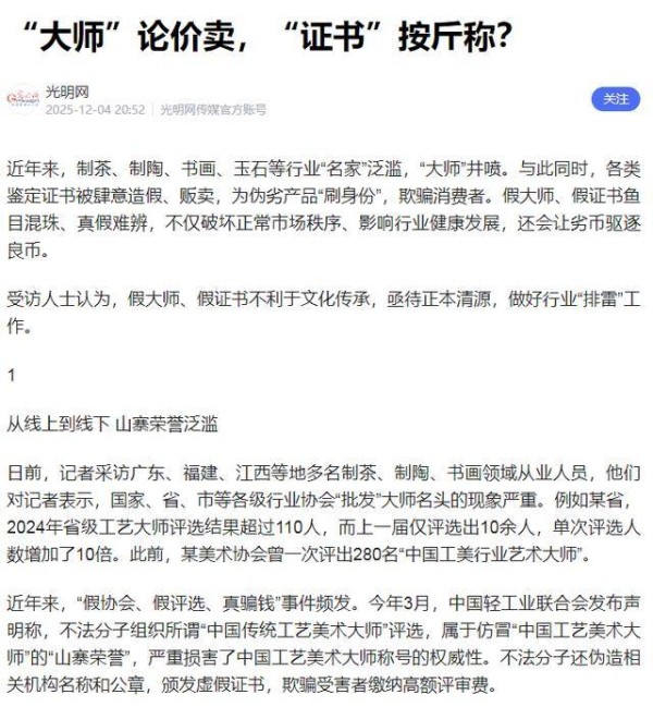 一个颇具代表性的案例是,此前网络上一度引发热议的某青年艺术从业者。其团队通过精心包装,标榜“国家一级美术师”、“95后艺术领军者”等耀眼头衔,并辅以奢华生活场景的展示,迅速构建起一个“天才大师”的人设。然而,当剥离滤镜,其作品被诸多专业评论者指出,在艺术语言与思想深度上尚处探索阶段,更多呈现为精致的工艺性重复。公众从最初的猎奇追捧,迅速转为对其“弄虚作假”的质疑与嘲讽。这一“人设”的速成与速朽,极具象征意义地揭示了当下“大师”制造的流水线模式:重头衔营销与形象包装,而轻艺术本体的深耕与突破。它暴露的是一种价值评判的短路——我们似乎迫切需要一个可供仰望的符号来安放期待,却又因缺乏稳固的评判基石,而对任何矗立起来的偶像充满不信任,最终陷入“造神”与“祛魅”的循环怪圈。